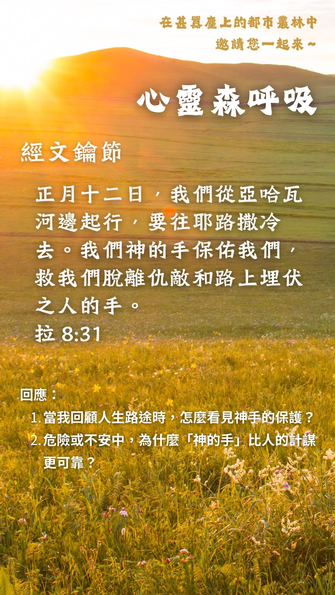 閱讀: 以斯拉記8章15-21節 | 全年讀經進度: 出埃及記12-13章;馬太福音16章