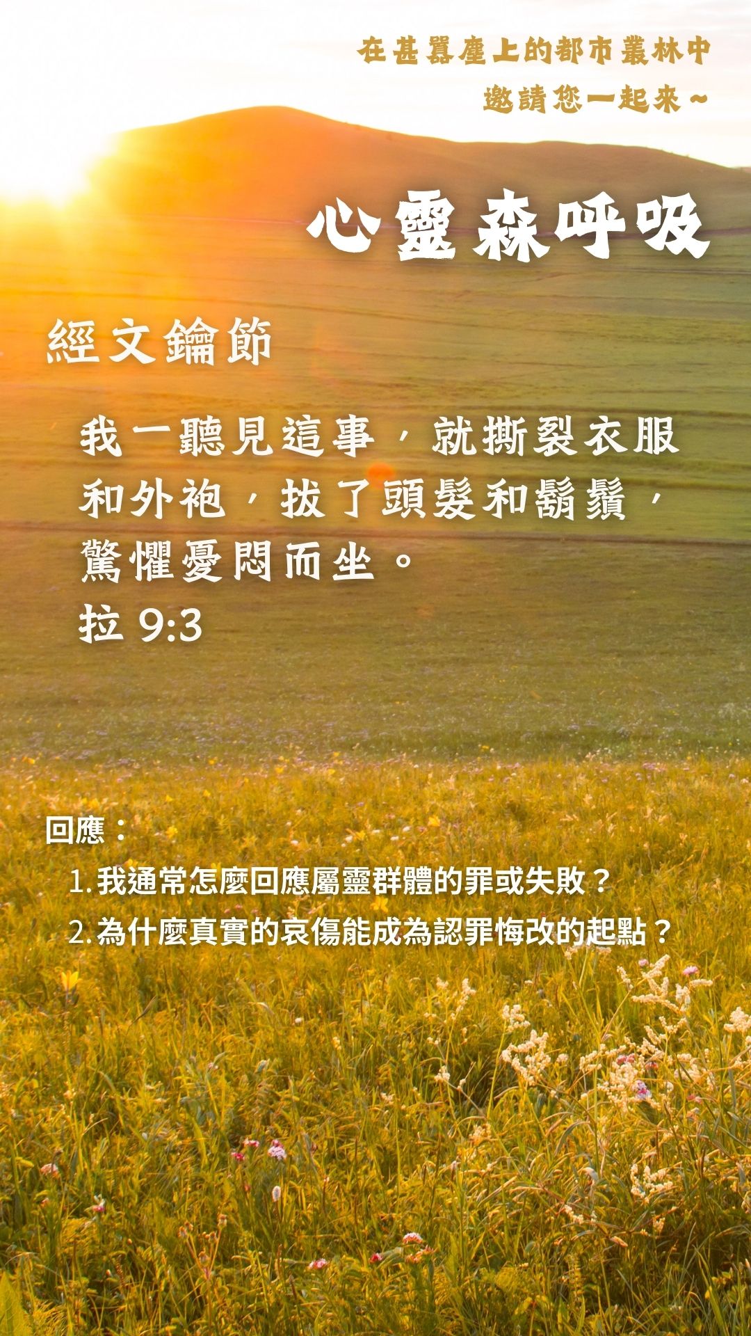 很多時候我們都在看是誰的錯,是俄羅斯還是烏克蘭呢?可是今天我們會從以斯拉,這作為神的祭司又是文士,深深的懂聖經、明白神律例、法則的,被神所使用的器皿-以斯拉。他如何在禱告中,提到問題真正的重點?所以這事關重大,我們今天來讀這段經文時不要只想到關於以色列或關乎他們,而是這件事跟我們、全世界的各國的情勢都是息息相關的。拉9:1-2(新譯本)1“完成這些事以後,眾領袖前來見我,說:‘以色列民、祭司和利未人沒有從當地的民族中分別出來,他們隨從迦南人、赫人、比利洗人、耶布斯人、亞捫人、摩押人、埃及人和亞摩利人行可憎的事。2他們為自己和自己的兒子娶了這些外族的女子為妻,以致聖潔的種族與當地的民族混雜了;而領袖和官長竟是這不忠的事的罪魁。’一開始講到這些事以後以斯拉帶著王的御令及聖殿要使用的人還有很多貴重的金銀、器皿,從巴比倫、波斯外地千里迢迢回到耶路撒冷,他把這些交辦的事情都處理完了之後,(V1-2)有一些領袖來見他,跟他講關於這些違規的人,當時所呈現的問題-與外族結親,特別這裡面提到官長、領袖帶頭,他形容這是不忠的事,獎到這些他們與外族-行可憎的事的這些人結親,這是以斯拉剛到耶路撒冷沒有多久,剛完成交的事後所聽到的第一個消息。拉9:3-5(新譯本),提到以斯拉的反應,3我一聽見這事,就撕裂我的衣服和外袍,拔掉頭上的頭髮和鬍鬚,驚懼地坐著。4所有因著以色列 神針對被擄歸回的人之不忠、對他們所說的話而戰兢的人,都聚集到我面前。我驚懼地坐著,直到獻晚祭的時候。5“獻晚祭的時候,我在禁食中起來,穿著撕裂了的衣服和外袍,雙膝跪下,向耶和華我的 神張開雙手。你們看到以斯拉的反應相當強烈,他把衣服、外袍都撕裂,拔他的頭髮、鬍鬚,他是驚恐懼怕的坐著,一直到獻晚祭時禁食跪在神面前,就開始了向神的認罪禱告,我們等一下會看他認罪禱告的內容,其實這樣的禱告,在我們四十天的自潔裡對我們是很重要的提醒,我也應當如此撕裂心腸來到神面前,我們這週與上次講道的那週,我們用同一個金句,金句的內容你們剛才讀的,其實建造聖殿在人看來是又大又難,但神說:那是出於祂要做的事,祂說有就有,其實這都不是最困難的,其實最困難的是-人心的重建,在這兩次的金句中都強調神所看顧的不是在外在建造的殿,而是因為罪而憂傷、痛悔的心,神真正要居住的殿在人的心。所以今天要講的又大又難的事比上次的更困難,但更重要。以斯拉事第二次帶百姓從巴比倫、波斯、外地回歸,距離第一次回歸已經是七十幾年的事了,相當於是一個世代的結尾,七十幾年過去,他是第二次帶領百姓回歸,可是才剛回歸就接到這個消息,就是前一批回歸的人,有很多人已經當地的人,行可憎之事的人結親,而且結親的人當中有官長、領袖,包含祭司長的後代、祭司、利未人、聖殿服事的人、家族,這是很嚴重的問題。