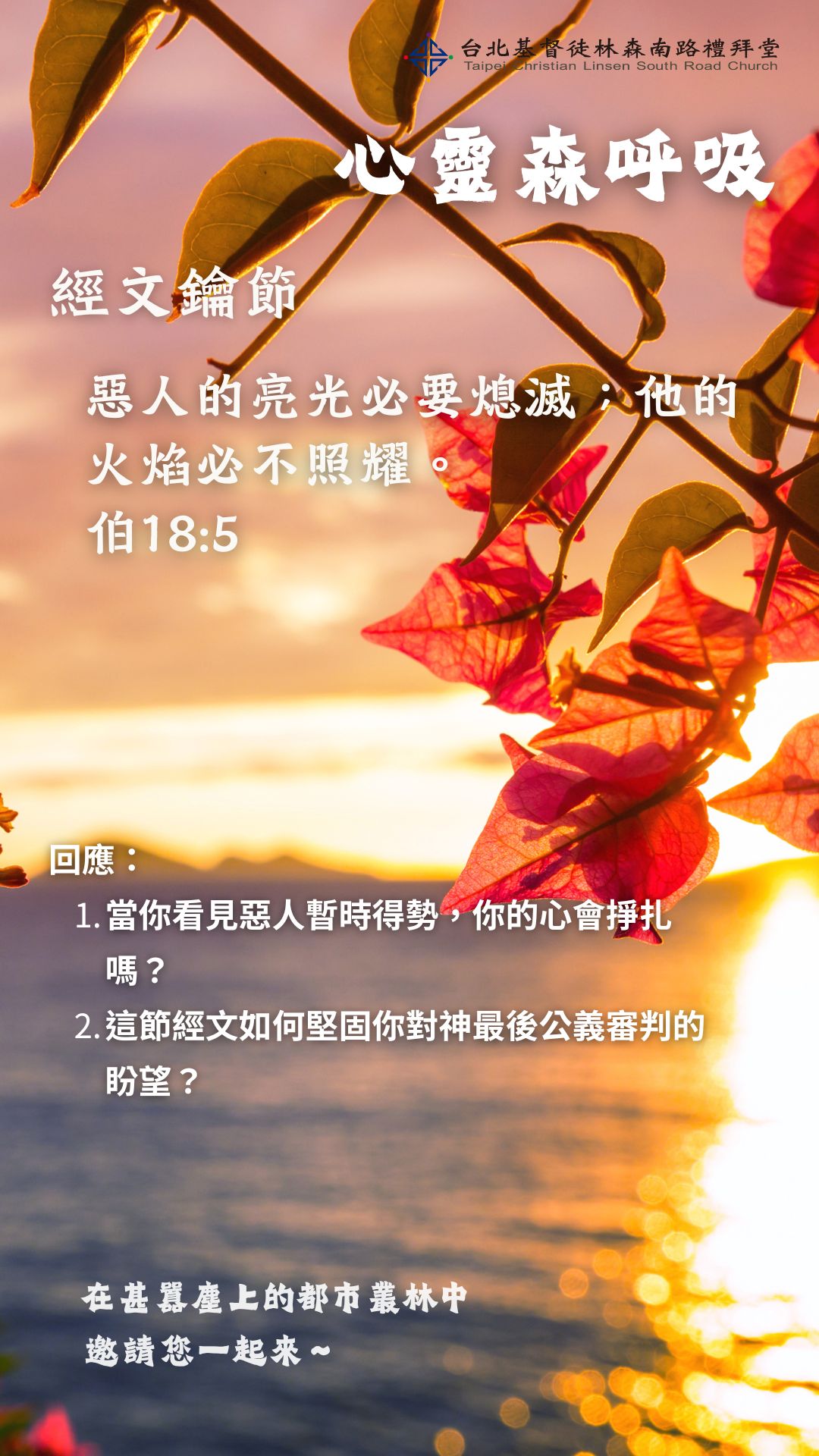 2. 鑰節:惡人的亮光必要熄滅;他的火焰必不照耀。(伯 18:5)