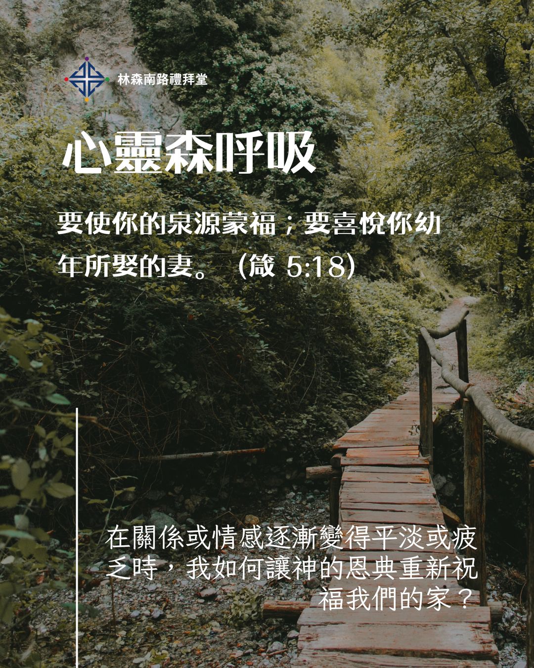 2. 鑰節:要使你的泉源蒙福;要喜悅你幼年所娶的妻。(箴 5:18)
