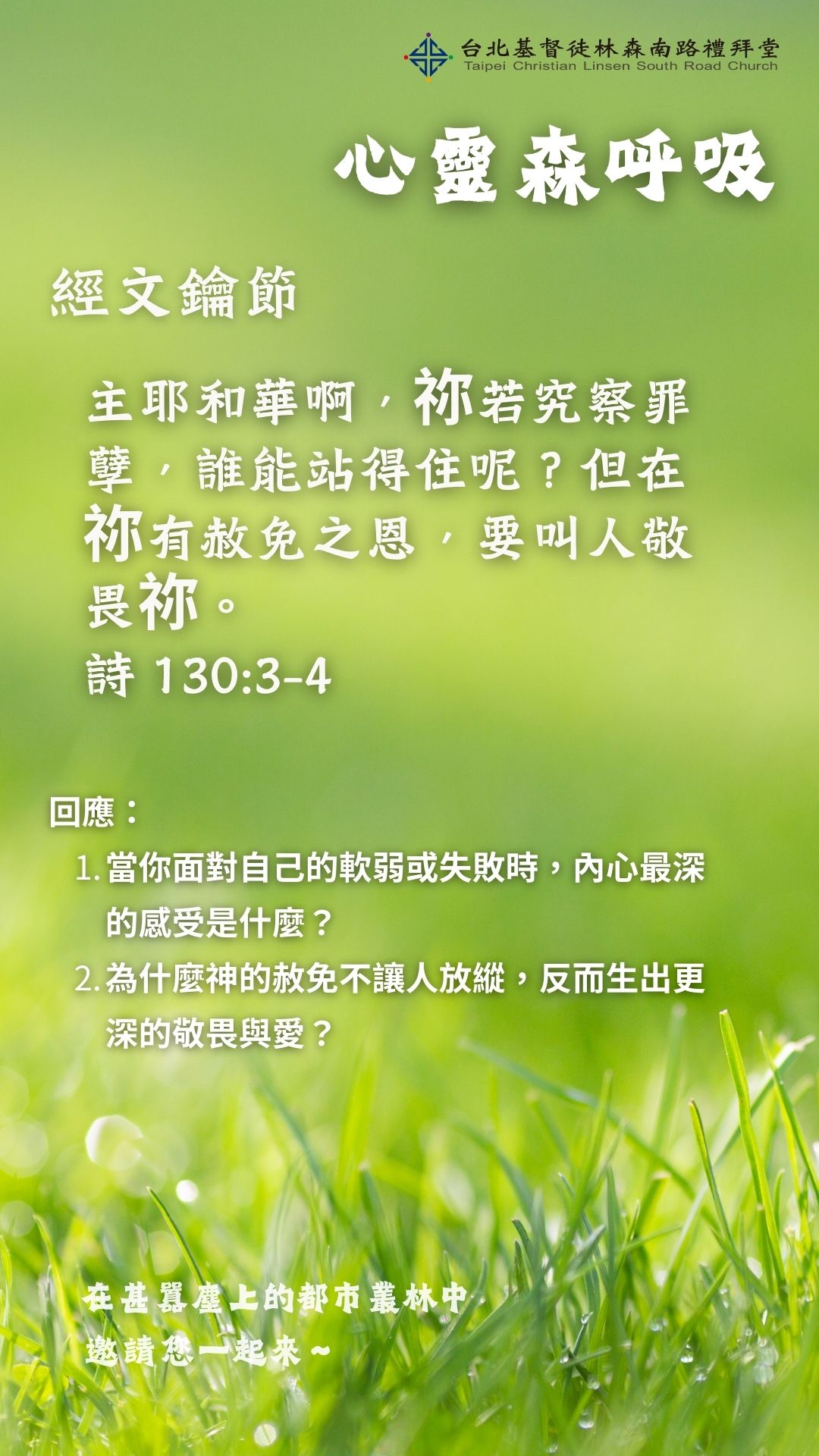 2. 鑰節:主耶和華啊,祢若究察罪孽,誰能站得住呢?但在祢有赦免之恩,要叫人敬畏祢。(詩 130:3-4)