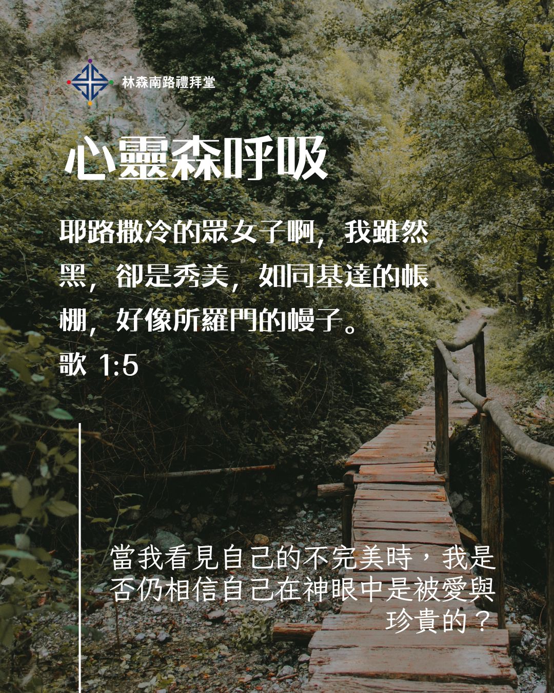 今天是主日,讓我們為教會中適婚的弟兄姊妹能有聖潔的戀愛過程、享受神聖的愛情禱告!靈意解經的角度,我們雖然「黑」,基督仍接納我們、愛我們!今天也為基督的愛是何等的長闊高深獻上感恩,並向主說:「願祢吸引我,我們就快跑跟隨祢!」(1:4)